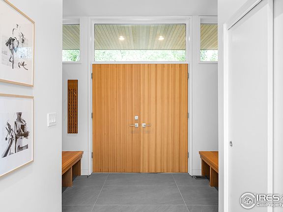 A rare architectural gem in Silver Maple, this newly built residence by Mark Gerwing and Jim Walker of Build ACI blends striking design with state-of-the-art systems. Soaring 14-foot ceilings, custom wood paneling and walls of glass create an open, light-filled floorplan that flows seamlessly with Italian tile and oak floors. The stunning eat-in kitchen dazzles with a vast center island, induction cooktop, wine refrigerator, ice maker and high-end appliances. Each bedroom offers the comfort of an en-suite bath. Revel in indoor-outdoor living with an enclosed courtyard accented by a concrete privacy wall, a thriving pollinator garden in the front yard and a sprawling rooftop deck with mountain views. EV ready power, sustainable design features include solar panels with PowerWall, double on-demand water heaters, zoned HVAC and advanced drainage systems built to bedrock. Moments from Growing Gardens, Ideal Market and Pearl Street, this home embodies modern luxury rooted in Boulder's natural beauty.