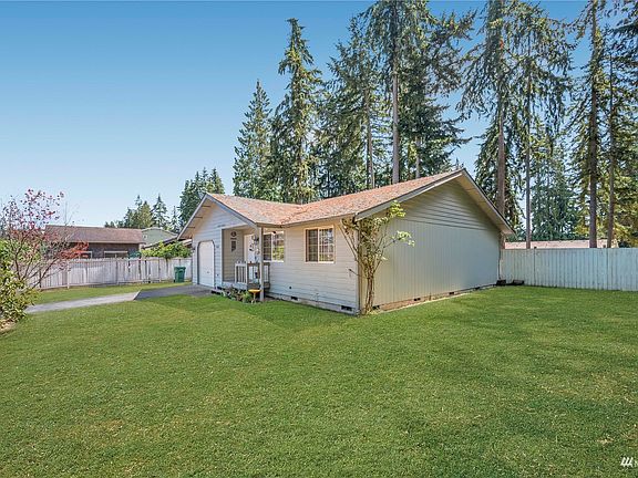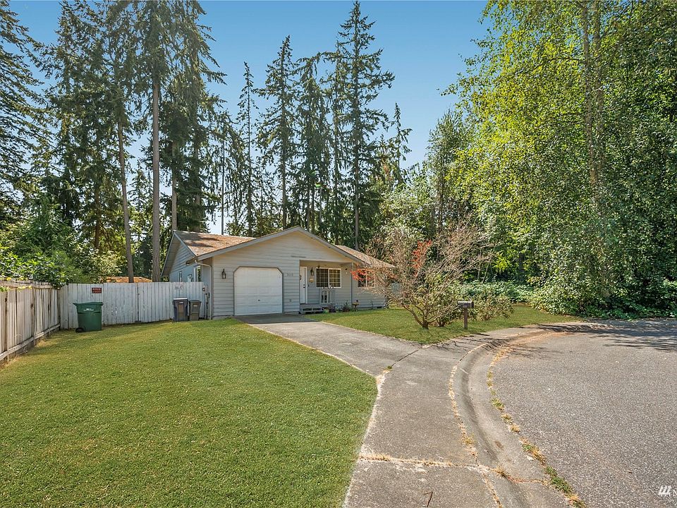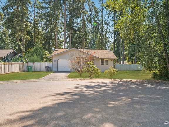 Charming 3 bedroom 2 bathroom rambler nestled away at the end of the cul-de-sac offering you plenty of peace and quiet! Home features include: spacious living room, kitchen with white cabinets, built-in microwave, an eating bar that connects to the dining room, oversized fenced backyard, pear tree in the front yard, large back deck, and a one car garage! Relax & unwind in the primary suite boasting a spacious private bath with tiled floors and a walk-in closet! Conveniently located close to I-5, Smokey Point restaurants, shopping, and amenities!