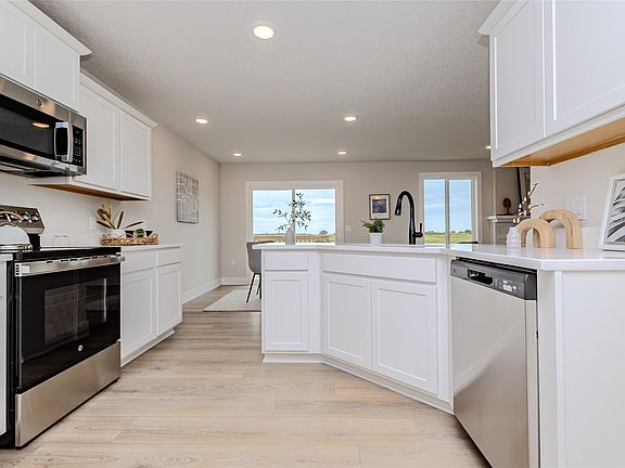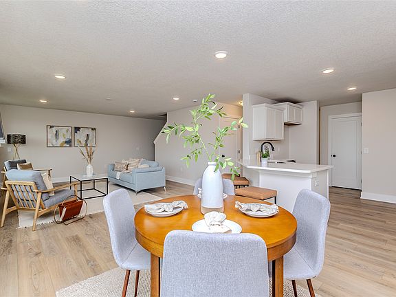 Check out Jerry's Homes Caldwell plan that offers a spacious family room with gas fireplace. The kitchen is slightly tucked back offering just enough separation but still having an open concept! The breakfast bar is great for quick meals or to set up for buffet-style entertaining. Ample cabinets with quartz countertops offer a beautiful, bright kitchen and LVP for ease of maintenance. There is a deck off of the dining area through sliding glass doors. All three bedrooms are located upstairs, along with the conveniently appointed laundry room. The master has a tray ceiling, private bathroom with a walk-in shower and dual sinks plus a huge walk in closet. The secondary bedrooms are nicely-sized and share a hall bathroom. The home has a 3-car garage for tons of extra storage. *Floor Plan photos may include upgrades & Photos are Similar To future finishes.