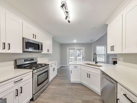 Discover the perfect family haven in the heart of Marietta! This beautifully renovated 5 bed / 3 bath home blends modern upgrades with timeless charm. Fresh interior and exterior paint, new LVP flooring, plush new carpet, and new exterior doors create a bright, refreshed, and inviting atmosphere throughout. Step into the welcoming foyer that leads to a formal dining room graced with a chic modern light fixture and a fireside living room with soaring ceilings, perfect for gatherings and everyday living. The newly renovated kitchen is a chef's delight, featuring stainless steel appliances, quartz countertops, crisp white cabinetry, a sunny breakfast area, and convenient washer and dryer hookups. The primary suite on the main level is a serene retreat, boasting tray ceilings and a luxurious ensuite with a double vanity with modern mirrors, a soaking tub, a separate shower, and a spacious walk-in closet. Two additional main-level bedrooms share a beautifully updated bathroom. The finished basement offers flexible space for extended family, guests, or potential rental income, complete with its own kitchen, two bedrooms, a renovated bathroom, laundry room, a cozy living room, and abundant storage. Outside, the fenced and level backyard, along with the new deck, provides the perfect space for kids and pets. Don't miss the opportunity to make this exceptional property your own!