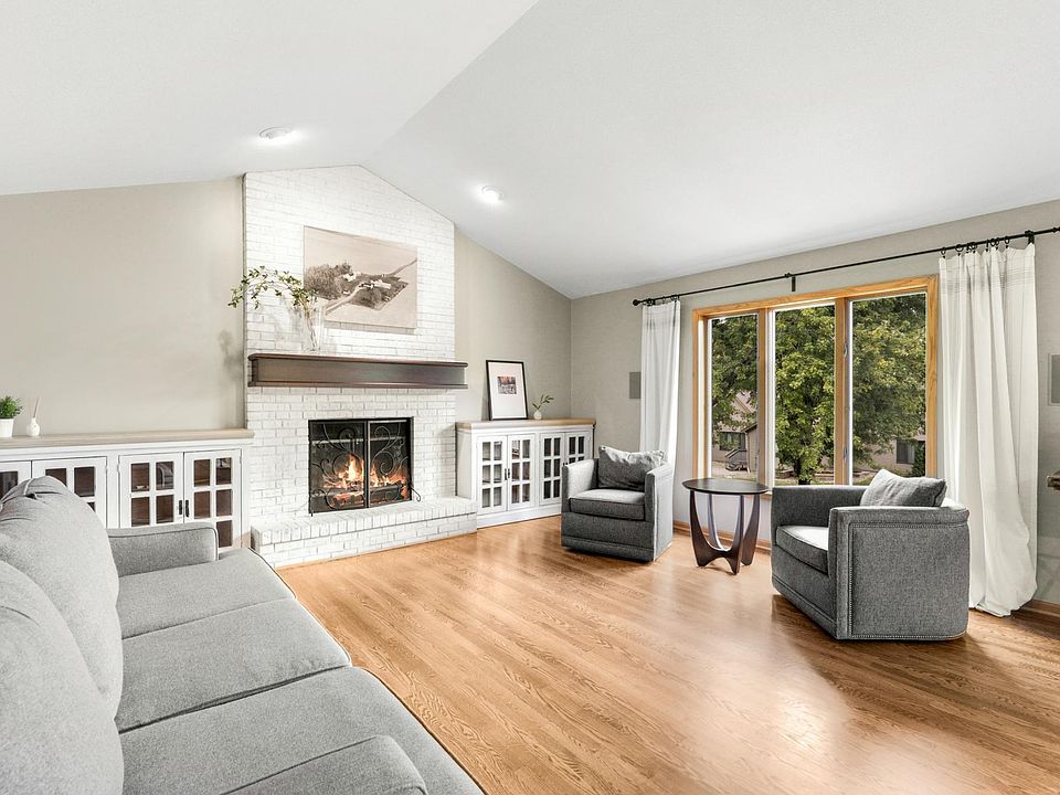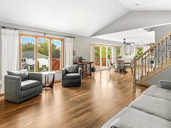 Welcome to this stunning, meticulously maintained 2-story home offering a perfect blend of style, comfort, and space. The main level features a bright and open floor plan, perfect for everyday living and entertaining. A private office provides a quiet space for work or study, while the beautifully renovated, open-concept kitchen features ample storage, and a seamless flow into the family room with soaring vaulted ceilings that add a sense of grandeur and openness. Step outside to enjoy the expansive redwood and cedar deck with fabulous views, perfect for relaxing, grilling, or hosting friends and family. The large primary bedroom is a true sanctuary, boasting a generous walk-in closet and an updated en-suite bath. The lower level of this home is a true highlight, featuring a stunning solid wood ceiling and large gas fireplace that adds warmth and character. The walkout, complemented by two large sliding glass doors, floods the area with natural light, perfect for both relaxation and entertaining. A spacious fourth bedroom with a large cedar closet is ideal for guests or a growing family. A generous storage room for your belongings as well as plenty of room for hobbies, crafts, or projects. This incredible home includes a spacious 3-car garage offering plenty of room for vehicles, storage, and more. The large yard, with in-ground sprinklers, provides ample outdoor space for recreation or gardening. Located in the highly sought-after Mounds View School District, this home is a rare find in a fantastic location. Don’t miss your chance to make it yours, it's truly move-in ready! Please double check to make sure front door is locked when you leave.