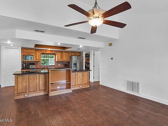 There's no place like home! And, this home has a peaceful, serene setting around the corner from everything!! Nature filled pond view. 2 story design with bedrooms & laundry upstairs. Downstairs great room is open & light filled. Updated kitchen features solid surface counters, spice cabinetry, pantry, tile backsplash, recessed lighting & stainless appliances. French doors lead to sunroom or screened patio. Bathrooms remodeled recently. All major components replaced - roof/2022, AC systems/2021 & 2024, water heater/2021, interior painted/2025, exterior painted/2023. Tile flooring downstairs. Pick your own flooring for upstairs with $2,000 allowance! Reclaimed water for sprinkler system. Community pool & tennis located across the street. Shopping, restaurants, golf academy & city park within 1/2 mile! Quick, easy access to I-95, Hwy 528, US 1 & upcoming Brightline terminal just minutes away. Cross the river a few more miles to cruise terminals & beaches! HOA is $240 bi-annual.