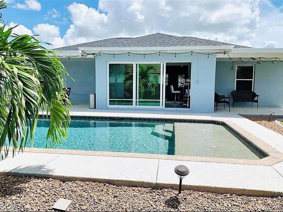 If you are looking for the perfect pool home in Cape Coral you found it!, New Roof 2023, Open floor plan with a designer kitchen and a very high end feel through out. In 2022 the property had the rear patio re stained, tile, and laminate bedrooms, septic tank pumped, 2022 new ac systems with 10 year parts and labor with uv light and nest thermostat, guest bath remodeled. In 2021 new filter for pool, pool Heater, pool Saltwater system, replaced water system, pad door locks, custom closets in master bedroom, lastly allergy gold filters in all ac returns. Smart garage door opener recently installed. In 2019 kitchen was remodeled with new tile, cabinets, lighting, sink and beautiful marble countertops. Pool area has platform with bubblers and led color changing lights through out and most important its heated! All appliances re less than 5 years old. Two separate cover patio spaces great for entertainment.