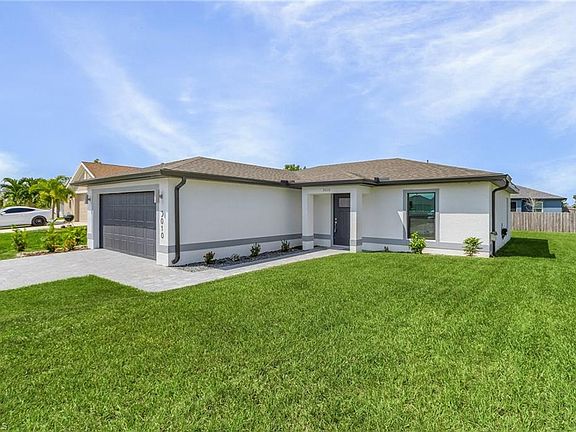 Check out this gorgeous 2023-built like-NEW HOME in tropical Cape Coral, Florida! Buyers can have peace of mind with HURRICANE IMPACT WINDOWS AND DOORS, as well as the comfort of NO FLOOD ZONE and NO HOA.This 3 bed, 2 bath, 2-car garage sanctuary offers the perfect living space for anyone looking for a low-maintenance lifestyle with 1,143 sq. ft. of modern design. Not to mention, the home is only a two years old which means every inch of the structure is in tip-top condition, including your ROOF, AC UNIT, and WATER HEATER! Admire the beautiful kitchen boasting granite countertops, white shaker cabinets, soft-close drawers, stainless steel appliances, a tasteful backsplash, and a center island with dine-in bar space. Luxury vinyl flooring runs throughout the main areas, and the primary suite features a walk-in closet, dual sinks, and a large tiled shower. Enjoy the reverse osmosis system in kitchen, a pavered lanai with ample space for a pool, and a nearly-completely fenced backyard! This home is in a quiet and safe neighborhood, centrally-located close to all local amenities such as shopping, restaurants, and much more! Don't pass up this move-in ready and affordable oasis! Schedule your showing today!