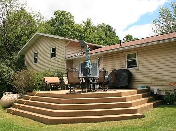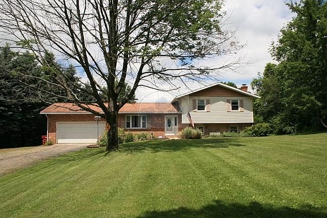 Beautiful country setting with 1.3 acres. Bordered by trees providing privacy and scenic views. Large composite deck overlooking the backyard, pool and woods. Separate sundeck faces the West affording views of the sunsets and neighboring horse farm. Insulated Pole Barn with electric, Wood Burning Stove, water, attic storage and concrete floor for a third garage or workshop. Home has new (2015) Trane 93 percent high efficiency propane furnace and central air conditioning. Lower bedroom(s) has walk out access which could be converted back to a family room. Whole house water filter. Chimney has 2 flues for wood burners.