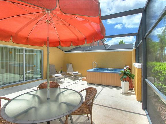Stylishly Furnished Vacation Townhome with Hot Tub! You'll appreciate the open plan, tile flooring, granite kitchen counters, and end unit location! The fully equipped kitchen is perfect for preparing evening meals to be enjoyed in the dining area or out on the patio. Plus, the breakfast bar is great for eating quick snacks on before heading out to a theme park. Movies will be perfect on rainy days as the living room boasts a large TV and plenty of space for all your guests. Have evening drinks out on the patio during those warm sunny evenings or enjoy relaxing in your own private hot tub. Upstairs you'll find the spacious master bedroom along with two other well appointed bedrooms. This home is located in the resort style, guard gated community of Encantada where you'll enjoy beach entry pool, lap pool, hot tub, fitness center, playground, business center, game room and clubhouse. Minutes from theme parks, major roads, shopping and dining! This home is currently on a short term rental program so there is a possibility that an extensive number of bookings may convey with the purchase should the buyer wish to inherit these. Don't miss out on making this your dream Florida vacation home!
