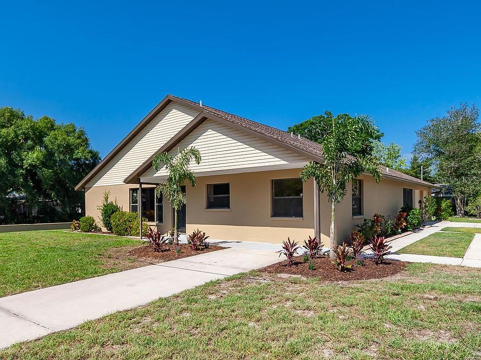 Simply Outstanding! Located in the ever popular SOUTH GATE neighborhood, this Move-In-Ready home has been recently renovated by a local custom home builder! Enjoy the benefits of a completely re-designed floor plan expanded to take advantage of its tall vaulted ceilings and large windows throughout the main living areas. No expense was spared in this absolutely gorgeous kitchen with hand built shaker soft close cabinetry, granite counter-tops and high end stainless steel appliances! The large kitchen island is sure to become the favorite gathering spot while entertaining! Warm wood flooring and porcelain tile dress the home's interior spaces with brand new vanities, sinks and shower tile in both bathrooms! Cool days ahead with an all new HVAC system! The massive master suite with sitting area and walk in closet provides the perfect spot to relax. A long lanai overlooking the backyard gives you lots of opportunities to expand your living space plus still have room for a large pool if desired. Do you have a lot of toys??? You will appreciate an over-sized two car garage that provides plenty of storage space and enough outside onsite parking to accommodate a growing or multi generational family!