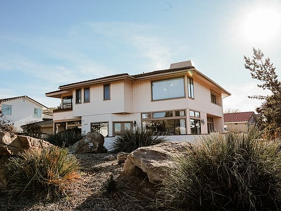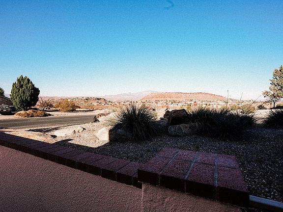 Nestled in a serene and friendly neighborhood, this anything-but-builder-basic home has awe-inspiring views from huge windows, perfect for watching hot-air balloons in the morning. Recently renovated, the interior radiates warmth and modernity, offering an inviting atmosphere. Large, numerous windows allow a flood of natural sunlight to illuminate every corner, creating a vibrant and cheerful ambiance. The heart of this home is its unique hand-laid red brick patio surrounding the front of the home, a perfect blend of elegance and charm, ideal for outdoor relaxation or entertaining guests. The home features three wood burning fireplaces to bring that cozy feeling to any get-together. The one-of-a-kind stairwell inside is not just a means to traverse floors but a statement piece of art, adding an exclusive touch to the home's character. Other highlights include spacious living areas, high ceilings, and comfortable bedrooms that serve as tranquil retreats. This property is not just a house, but a dream home waiting to be yours. Experience living in this beautiful St. George setting. Square footage figures are provided as a courtesy estimate only and were obtained from County records. Buyer is advised to obtain an independent measurement.