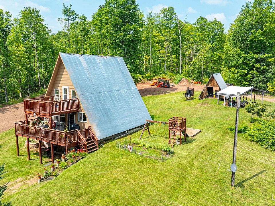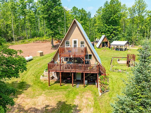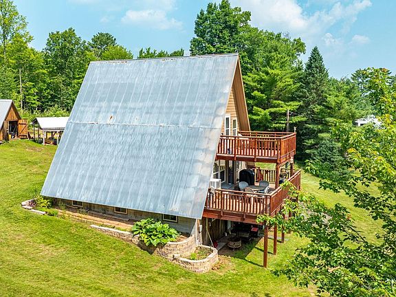 Welcome to this charming A-frame retreat, offering 2 bedrooms and 1.5 baths, peacefully tucked away on approximately 25 acres of scenic beauty. Step inside to discover an inviting open floor plan that creates a warm and spacious atmosphere, perfect for relaxing or entertaining. Both bathrooms have been thoughtfully updated in recent years, adding a touch of modern comfort. Upstairs, you’ll find two cozy bedrooms—including a primary suite with its own half bath and private deck, ideal for sipping morning coffee or stargazing under the night sky. A second deck on the main level extends your living space outdoors, surrounded by serene views and a beautifully maintained yard. Whether you’re seeking a quiet escape from the pace of city life or envisioning a full-time residence with rustic charm, this property offers the best of both worlds. It’s more than just a home—it’s your peaceful place to unplug, unwind, and enjoy nature’s embrace. NOTICE: All information believed accurate but not warranted. Buyer recommended to inspect & verify all aspects of the property & bares all risks for any inaccuracies including but not limited to estimated acreage, lot location/size, square footage, utilities (availability & costs associated). Real estate taxes are subject to change (possibly significant) & municipality reassessment after sale. Buyer should NOT assume that buyer’s tax bills will be similar to the seller’s current tax bills. Taxes are not zero. Audio/video recording devices may be present on property and entering the property shall be considered consent to be recorded. OFFERS: 72 hours response time requested on offers. Seller, at seller's sole discretion, with or without notice, reserves the right to set and/or modify offer submission & response deadlines.