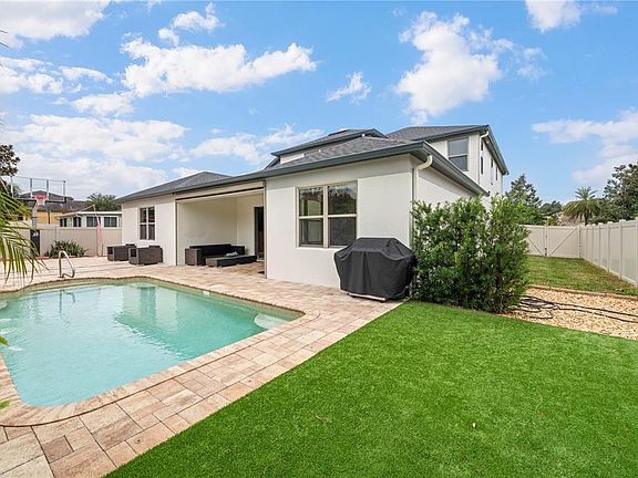 Paver pool deckPalm treesSaltwater poolLarge granite islandNew roofBonus room upstairsPrivate backyard oasis