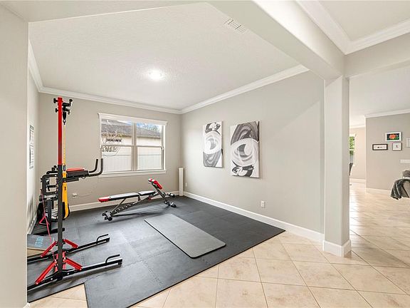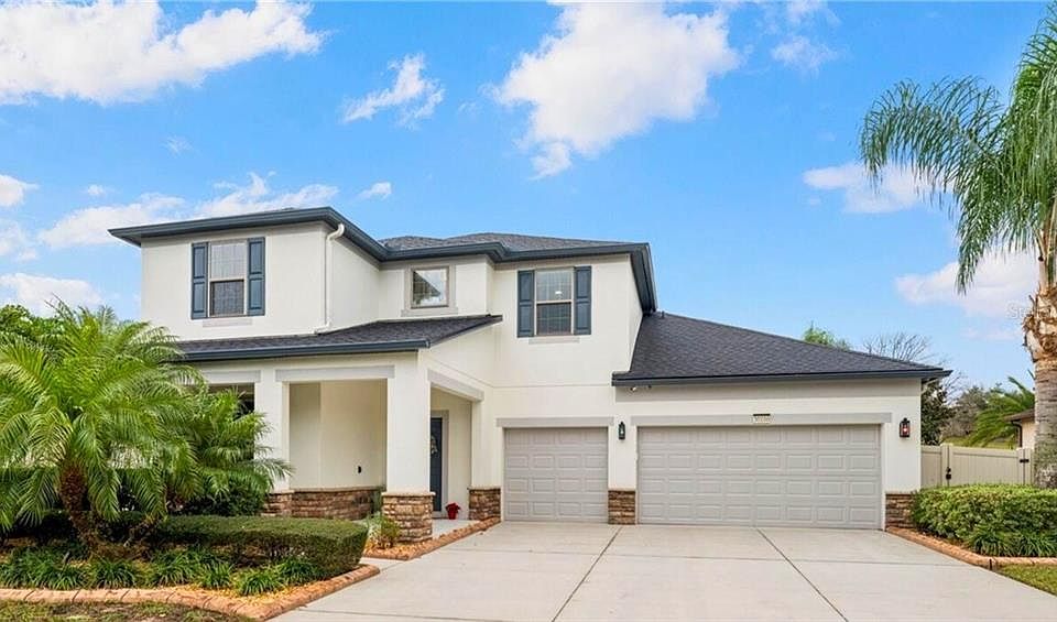 POOL HOME | JUST LISTED in Sullivan Ranch! This beautifully maintained 4-bedroom, 3.5-bath home with a bonus room upstairs and a private office downstairs is located in one of Mount Dora’s most desirable gated communities, just minutes from historic downtown Mount Dora, boutique shopping, dining, and year-round festivals. The open-concept layout is ideal for both everyday living and entertaining, featuring a spacious kitchen with a large granite island, eat-in bar, breakfast nook, stainless steel appliances, and ample cabinetry. Light-filled living and dining areas are enhanced by electronic blinds throughout the main living areas downstairs, offering both convenience and modern style. Enjoy your private backyard oasis with a saltwater pool, paver pool deck, palm trees, and thoughtfully designed, low-maintenance landscaping — perfect for relaxing or entertaining year-round. The outdoor living space has been professionally enhanced with decorative stone, landscape lighting, artificial turf, custom curbing, and expanded paver areas, completed between 2023–2025. Additional highlights include a first-floor half bath, laundry room with built-ins, generous storage, and a spacious primary suite featuring new engineered wood flooring in the bedroom and walk-in closet (2024), along with a soaking tub, walk-in shower, and double vanity. Recent upgrades include A/C air purification system (2022), electronic blinds downstairs, all interior lighting upgraded to LED (2022) including bathroom vanity fixtures, a new hot water heater (2023), epoxy-coated garage flooring (2022), garage walls painted to match the interior, and a new roof (2025). Residents enjoy resort-style amenities including a clubhouse, fitness center, junior Olympic pool, splash pad, playground, dog park, and scenic walking trails. Conveniently located near SR-429 with easy access to Orlando, major highways, beaches, and area attractions, this home offers the perfect blend of comfort, convenience, and Mount Dora lifestyle.