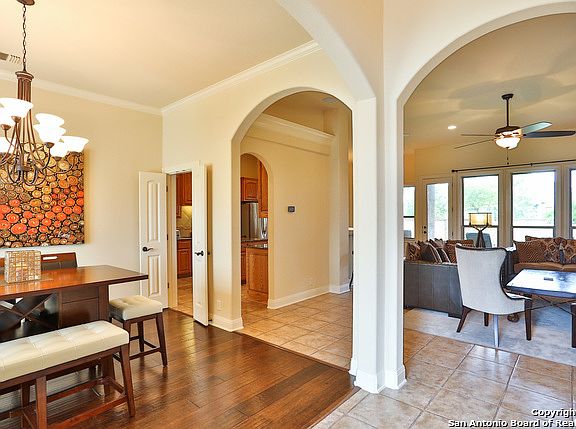 Former Model Home on one of the largest lots in the neighborhood. Open floor plan & tons of natural light w tile/wood throughout (NO CARPET!). Plantations shutters in entire home. Large island kitchen w granite counter tops and custom pull-out shelves in cabinets. Split level w spacious master suite w outdoor access to patio, his/her closets, and large bath w walk-in shower and whirlpool tub. Bonus/Flex room w/ office niche. Two car garage w/ room for golf cart.