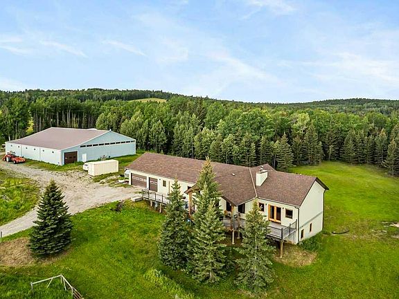 Stunning location just 10 minutes west of Water Valley. This beautiful 150-acre fenced and gated property offers a rare blend of open pasture, spacious yard, and dense forest with meandering creeks, creating an ideal setting for nature lovers, hunters and horse enthusiasts alike. The property includes a MASSIVE 100’ x 75’ INDOOR RIDING ARENA with a full-length 16’ side storage area along the east side—perfect for equipment, tack, and feed. Approximately 50 acres are dedicated to hay and pasture, while the balance is mature forest, offering privacy and recreational opportunities. North boundary is country grazing land and crown land is close by. Set up for a few horses with corrals and a round-pen. The unique 2,571 square foot walkout bungalow features vaulted ceilings and warm fir finishing throughout. The open-concept main living space includes a wood-burning stove, a huge kitchen ideal for gatherings, and a cozy family room perfect for relaxing. The spacious primary suite is located just off the living area and boasts a luxurious ensuite with a freestanding tub, dual vanities, water closet, brand new shower, wet sauna, and an expansive walk-in closet with custom cabinetry. The main floor also includes a second living area, flex space that was previously a second kitchen (see photos easily could be a second bed or office) and a convenient laundry room complete with a full bathroom, utility sink, and a shower that is also handy as a dog wash station. The bright and spacious lower walkout level includes a large living and recreation room, a full second kitchen, two generous bedrooms, a newly finished four-piece bath, another laundry station, plenty of storage, and a beautiful office with built-in cabinetry—ideal for working from home or another massive bedroom. Such a great space for multi-generational living or additional income. The centre piece of the lower level is a cast iron, top of the line HERGOM oven with a glass cooktop. Additional features include a heated triple attached garage, 30'x65' tarp storage building, BACK UP natural gas generator, two greenhouses for gardening, wood boiler system for the house in-floor heat and a massive west-facing deck to enjoy summer evenings. This exceptional property must be seen to be truly appreciated. Book your showing today!