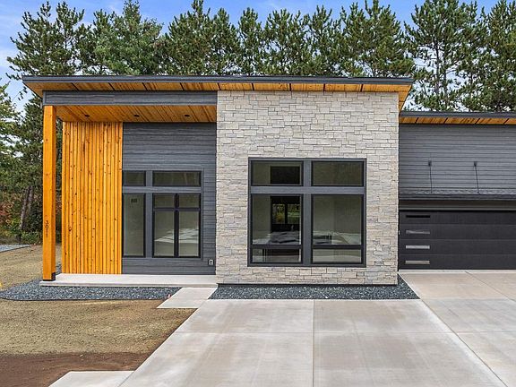 Parade home special!! Take a tour of this stunning BRAND NEW R. Smith Construction, INC parade home and you will be blown away by the high end features and stunning finishes that this zero lot line offers! This 3 bedroom, 3 bath zero lot line home has over 2,700 square feet of finished area will take your breath away from the moment you arrive. Its unique design blends natural wood finishes, stone accents, and LP SmartSide Siding, complemented by striking black accent Andersen windows and exterior doors. Step inside to soaring 20-foot ceilings, an inviting wood accent wall, and the warmth of an electric fireplace. Natural sunlight floods the open layout, highlighting the beautiful white oak hardwood floors that flow throughout, with tile accents in the bathrooms and laundry. The chefs kitchen is a dream, featuring stunning custom walnut cabinetry, stainless steel appliances, quartz countertops, a massive island, and a dinning area that is perfect for entertaining. A luxurious primary suite with a spa like tile shower and huge walk-in closet!,Enjoy convenient main floor laundry, and a second bedroom with an additional full bath, 3 season porch with wood accented ceilings, ideal for enjoying the changing seasons. The partially finished lower level provides even more space with a large entertaining area complete with a sink/bar, a third bedroom or office, and another full bath perfect for your guests. Unfinished space allows for all your storage needs. This one-of-a-kind property is a rare find! Attached garage and underground sprinklers in addition to all the features that you must see! If you want a top of the line brand new home, this is one to call home. Call today to make it yours! Some pictures show the property virtually staged. PROPERTY IS ON FIRST STREET BEHIND LITTLE CHARLOTTES RESUE ON POST ROAD, WHITING (Across from Fur and Fluff grooming)