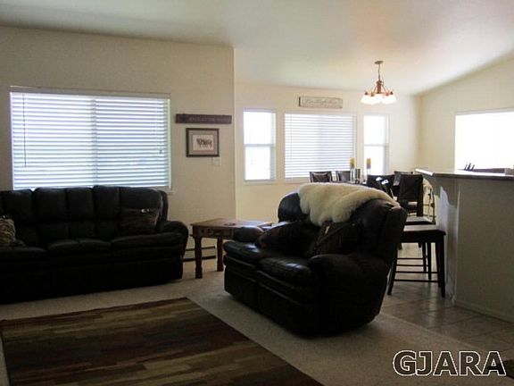 Wow what a great home! This well maintained rancher is neat and tidy & ready to move in. Open feel to the living, dining & kitchen with vaulted ceilings providing warmth & coziness. The 3 spacious bedrooms have walk in closets & the master bedroom has 5 piece master bath & access to the back patio. The easy maintenance yard is fenced and has a Rain-bird automatic sprinkler system for convenience. There is a separate laundry room and an oversized 2 car garage with storage. Enjoy having no neighbors in the back of this home as you sit under the covered patio with views of the Grand Mesa and Monument. This home is located in a nice neighborhood and is close to schools and parks. --- Updated : 2012-06-21