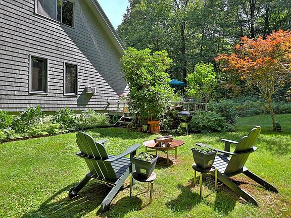 Price Adjustment! This gracious country contemporary, on the market for the first time, was designed and finished by its longtime owners, an industrial designer and an interior designer. Beautifully sited in a landscaped setting on a quiet country road, it enjoys distant mountain views and is protected on all sides by woods with nature trails. The 3 bed/3 bath interior is light and airy with plenty of living and working space including a bonus room used as a bunk room and unfinished space on the top and bottom floors allowing further expansion. There are distinctive and stylish touches exhibiting quality workmanship throughout, including floating stairs, custom built-ins, mahogany paneling in the open concept living/dining room, Saint Charles cabinets in the kitchen, a Rumford fireplace built with vintage bricks, a whirlpool tub, sauna, a workshop space and a darkroom that could be an artists studio or home office. Outdoor living possibilities abound with a wrap-around deck, fire pit, lush gardens and a designer-built shed. Peaceful and private, the property is located just minutes by car from Okemo Mountain and Ludlow's shopping amenities and, in the other direction, from Weston's theater, cafes and The Vermont Country Store. The property is also being offered without the undeveloped land parcel across the road; see MLS 5000110. Come see it in person and discover the many distinctive qualities of this much loved home. All measurements approximate.