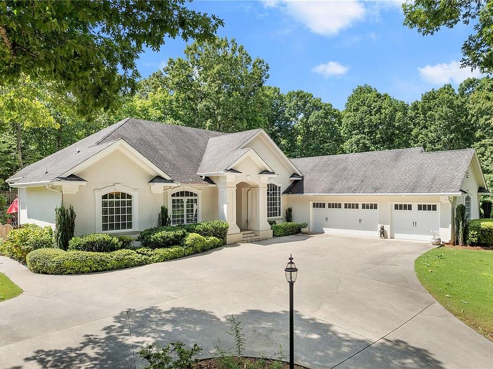 This exquisite single-level home showcases a luxurious gunite saltwater pool and waterfall with pebble tec lining, all set amidst beautifully landscaped surroundings. Thoughtfully designed with elegance for everyday living, the home offers 4 spacious bedrooms and 3 full baths, along with a 3-car garage. The interior is adorned with arched openings, neutral wall colors, and a combination of hardwood floors and ceramic tile. The sunroom provides tranquil views of the pool, enhancing the home’s serene ambiance. The chef’s kitchen is equipped with double ovens, a gas stove, a large breakfast bar, and a breakfast room, seamlessly flowing into the great room, which features a cozy fireplace with gas logs and built-in cabinets on each side. The primary suite includes a stunning private bath with a soaking tub, separate shower, dual vanities, and walk-in closets. Additional highlights include a formal dining room, a versatile living room or office, vaulted guest bedrooms, and a large laundry room with tile flooring, cabinets, and a sink. Ample storage space is available in the walk-up attic with a permanent staircase, and the standup crawl space provides additional storage and a safe room. Conveniently located near the Chattahoochee Golf and Country Club, Lake Lanier, and downtown Gainesville, this home offers a perfect blend of comfort, style, and accessibility. Seller is related to the Listing Agent.