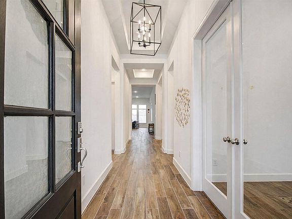 Stunning PERRY HOME! Sought after ONE STORY plan with 4 Bedrooms and 3.5 bath plus a STUDY and MEDIA ROOM! Home has no back neighbors to give you complete privacy. This is a smart home that can be controlled by google devices. Grand high ceiling entry hallway leads to spacious living area w/12 ft CEILINGS & a wall of windows. Designer level finishes including WOOD PLANK TILE that flows through living area,dining,study and kitchen. Kitchen has counter seating at the expansive island, WHITE CABINETS, beautiful white tile backsplash, GAS COOKING & a walk-in pantry. Primary suite is spacious and the has a beautiful ensuite bath and a walk in shower and double vanities. The primary room also has two spacious his and her closets. COVERED PATIO & fenced back yard w/sprinkler system. 3 CAR GARAGE! Pomona amenities include parks, trails, fitness center & pools. Only 15 miles to TX MED Center. Fridge & W/D included.