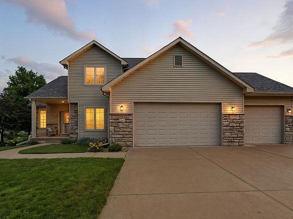 This beautifully maintained 2-story home offers approximately 2,374 sq ft of tastefully finished living space, including a partially finished lower level with daylight windows. With 3 spacious bedrooms all located on the upper level—and potential for a fourth in the lower level—this home is designed for both comfort and flexibility. The upper level features two full bathrooms, including a large primary suite with a trayed ceiling, jet tub, separate shower, double vanities, and a generous walk-in closet. Bedroom #2 also features a vaulted ceiling. The main level is designed with an open layout with a spacious kitchen that includes a large center island, granite countertops, stainless steel appliances, granite composite sink, Birch cabinetry, and a built-in desk. Beautiful hardwood floors flow through the kitchen, dining room, half bath, and entry. The family room offers tall 10-foot ceilings, a gas fireplace, and large windows that flood the space with natural light. A cozy office/den with French and pocket doors, a separate mudroom, and a main floor laundry room add function and charm. The finished lower level includes a large family room—pool table, 2 sofas, and the TV are included—and is plumbed for a future bathroom. Additional highlights include painted white trim and doors with black hardware, a spacious 3-car attached garage (approx. 852 sq ft), updated furnace and AC (2024), and new siding, roof, and gutters (2023). Sitting on a flat, beautifully landscaped 11,065 sq ft lot with mature backyard trees, this home is located in Northridge Heights neighborhood (Gilbert School District) and just a short distance from a park and grocery store. Clean, stylish, and well cared for—this home is truly move-in ready. Sellers shall respond to offers after 5 PM on Monday, June 30.
