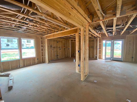 This beautiful Telfair Floor Plan sits on 0.57 acres homesite. It has an open concept with the living area adjacent to the open kitchen. It has four bedrooms and two and a half baths. The kitchen has a large walk-in pantry, granite countertops, pendant lights over the Kitchen Island, upgraded cabinets with crown molding, and is attached to both a formal dining room, as well as an informal eat-in area which flows directly into the family room. Downstairs there is guest bedroom with a walk in closet and full bath. A garden door from the eat-in area leads outside to the Covered Porch plus additional 10/12 patio and large backyard. Upstairs, the oversized primary bedroom has a roomy walk-in closet and en-suite bathroom with a raised vanity, granite countertops, double sinks, and large garden tub with separate shower. There are three additional bedrooms upstairs that share a full bathroom and plenty of storage. There is a loft space that is great for a teen hangout, movie room, office, gym or homeschooling. Maggie Acres offers charming new homes on half acre plus homesites all nestled in a tranquil country setting. Easy access to I-26 and I-85 and less than 10 minutes to Downtown Spartanburg!! Close to all the amenities Boiling Springs has to offer - Lake Bowen, Shopping, Parks, Restaurants and the coming in Spring Publix!!