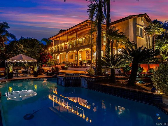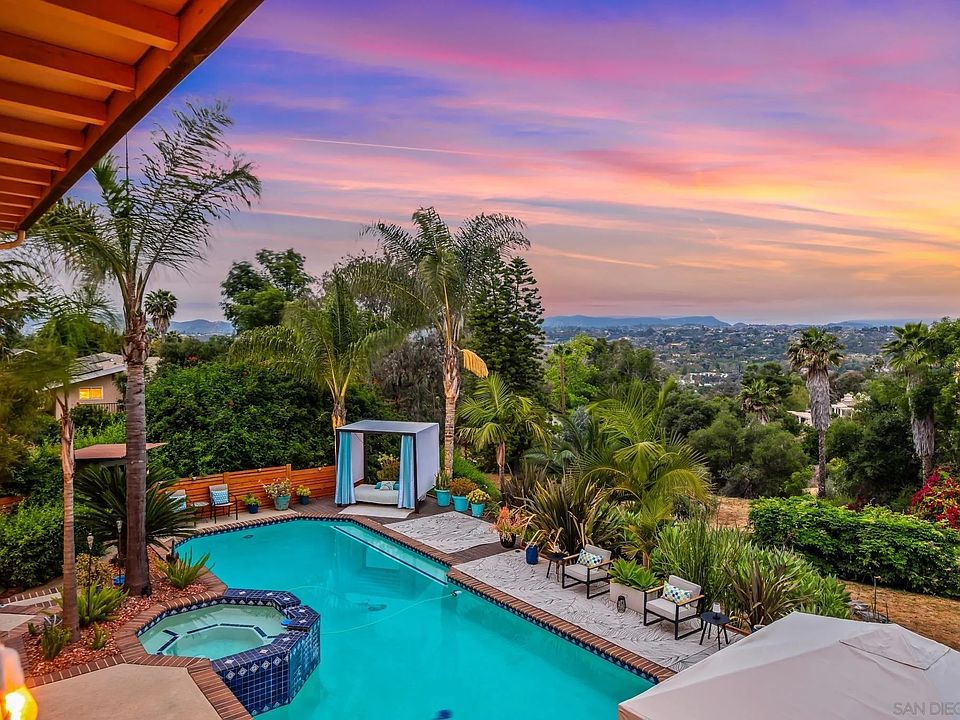 Welcome to your own private oasis with stunning panoramic sunset views! This property boasts not one, but three buildings, providing ample space and versatility. The main living floor features 3 bedrooms, 2 bathrooms, and those breathtaking sunset vistas. Need a space for guests or multi-generational living situations? The downstairs suite has its own entrance, living room, bedroom, full bathroom, office nook/den and even hookups for a kitchenette. Plus, there's a separate hobby/craft room with its own entrance and bathroom – perfect for creative pursuits! The second building offers convenience with a laundry room, plenty of storage, and a media room for epic entertainment nights. Park your vehicles in style with the detached 3-car garage, complete with an EV charger for eco-friendly driving. Outside, the fun continues on the fully fenced 1.2-acre lot, adorned with multiple fruit trees and inviting garden beds. Dive into relaxation with a refreshing pool, soothing spa, and rejuvenating outdoor sauna. Retreat to the cabana or gazebo for a tranquil escape, or gather around the terrace's outdoor fireplace for cozy evenings under the stars. Inside, the luxuries continue with upgraded walk-in closets in the primary bedroom and a sleek home bar for entertaining guests. Enjoy seamless indoor-outdoor living with three sliding doors leading to the expansive balcony, offering sweeping views and a seamless connection to nature.
