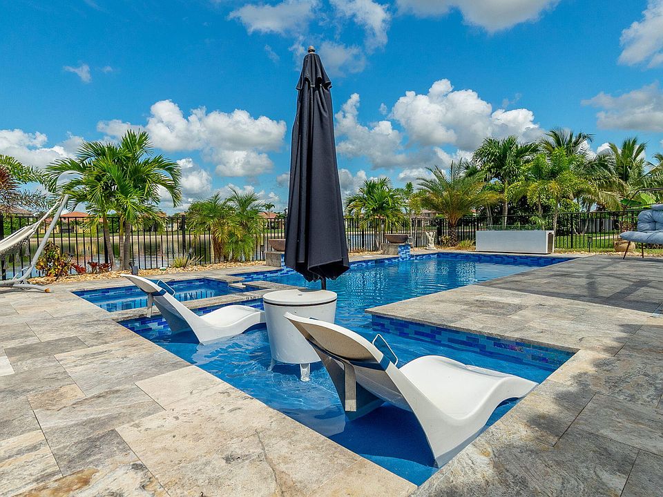 Don't miss the opportunity to own this beautifully upgraded 3-bedroom, 2-bathroom home with a versatile flex room and a newly converted den, now serving as a spacious third bedroom.Enjoy resort-style living with a stunning saltwater pool, integrated jacuzzi, and heater--all overlooking a serene lake view. The expansive screened porch features a fully equipped outdoor kitchen with a granite countertop, making it the ideal space for entertaining.This home offers numerous upgrades throughout and is move-in ready.An assumable VA loan with a 2.25% interest rate is available, subject to lender and VA approval.