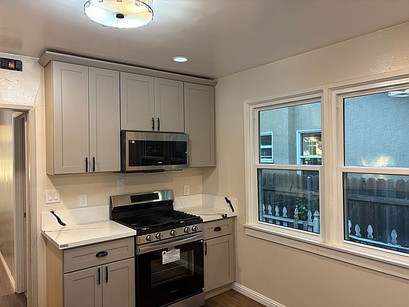 Spacious 2 1/2 bedroom, one bath Duplex. Completely updated with new flooring, kitchen appliances, windows, and paint. 1/2 bedroom would make a great home office. Large laundry room with storage for bikes,etc. Central heat and AC. One, dedicated parking spot as well as street parking.