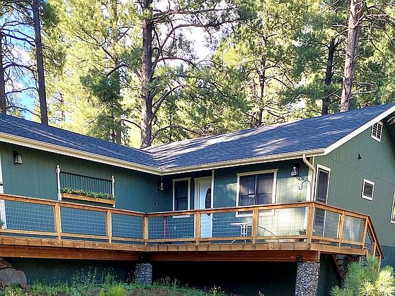 Beautiful single level 3 bedroom, 2 1/2 bath home, 2 car garage tucked in the tall pines of Kachina Village. This is a perfect property for a full time, seasonal resident or investment property. House appraised 10.7.22 at $600K. Built 2020, a desirable split floor plan with upgraded windows, architectural grade 25 year shingles, and forced air gas heat on a 1/4 acre corner lot with a fenced back yard. RV parking. Spend nice weather on the open front deck, or entertain on the covered back deck while enjoying the fresh mountain air. This quiet neighborhood is only minutes from town and 200 yards from National Forest access and hiking trails. Seller will consider seller assistance for closing costs with strong offer. Buyer agent commission 2.5%. Title company is Pioneer Title Flagstaff.