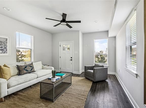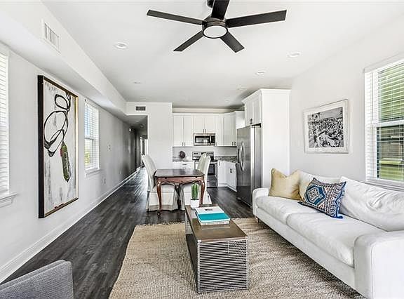 Just 10 minutes from downtown New Orleans, this 3-bedroom, 2-bath home combines comfort, style, and convenience. The open-concept living and kitchen area for entertaining or relaxing, featuring quartz countertops, stainless steel appliances, and plenty of cabinet space. The layout offers a great flow, with natural light throughout and no carpet just clean, modern flooring in every room. The primary bedroom includes an en suite bathroom and generous closet space, while the two additional bedrooms for guests, a home office, or family. Enjoy the ease of in-unit laundry and the bonus of off-street parking. Whether you're commuting to the city, working from home, or just looking for a low-maintenance place to live, this home checks all the boxes. Located in a quiet neighborhood with easy access to shops, restaurants, and major roads, this newer construction home is move-in ready and built for everyday living.