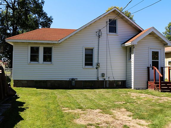 The perfect starter home! There are hardwood floors underneath the carpeting in the bedroom and living room. The second bedroom is a walk-thru or use it for a dining room. Newer windows and vinyl siding. The kitchen needs to be updated but it has a nice size walk-in pantry. The attic has potential for lots of storage. The oversized 1 1/2 stall 18x22 garage was built in 1996. The front porch is inviting for early morning coffee or relaxing after a long day! The yard is full of apple trees including centennial crab apple and honey crisp apples. There are also Nanking cherries, blueberries and Juneberries.