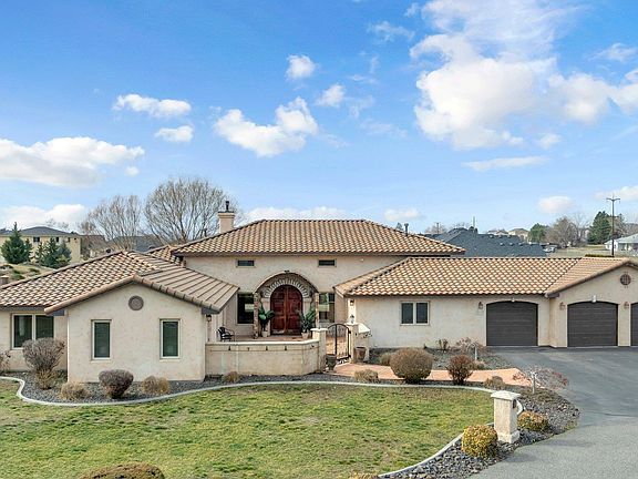 MLS# 273976 Welcome to luxury living at its finest in this highly prestigious neighborhood. If you want to stand out from the rest, then this is the home for you! This Custom built single story estate with zero clearance entrance will not disappoint. As you enter the home you are greeted with Venetian plastered 16ft ceilings and arch ways. Complemented by ambient natural lighting shining through from the courtyard yard and Lanai. The open concept living creates the ultimate space for all your entertaining needs. As you head into the Kitchen you will be amazed with the gourmet, chef kitchen which showcases cherrywood cabinetry, granite countertops, breakfast bar with built in wine chiller, expansive island with prep sink, professional grade 6 burner with flat top stove, pot filler and a huge walk-in pantry. The Romantic Primary Suite creates the ultimate getaway with French doors out to the patio, and dual sided fireplace into a luxurious master Bath with his and her walk in closets, dual vanity sinks, a walk in shower with massage jets and dual heads. The Secondary Suite has a separate entrance and French doors that open up to the front lanai with private bath. There is an additional den/study and jack and jill style bathroom for the two adjoining rooms. Also included is an oversized laundry room with a dog shower! Head outside to enjoy the expansive covered patio for premium outdoor entertaining. Check out the 40x40 shop with two bays, 12ft doors, 16ft ceilings, Loft, ¾ bath, wet bar and RV hookups. Give us or your favorite Realtor a call today to schedule a private showing. Don’t miss out on your opportunity to own a one of a kind estate.