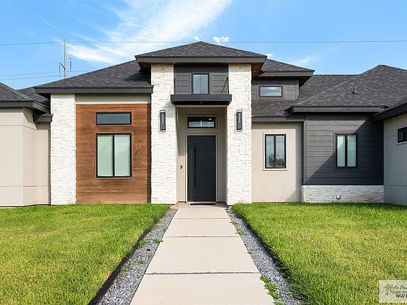 This 3BD/3BTH 2,447sf DUAL MASTER residence blends contemporary design w/ timeless charm. Built on a .58 acre lot featuring a striking exterior of white stone, dark gray siding, & warm wood accents, this home offers exceptional curb appeal & architectural sophistication. Discover a thoughtfully designed split/open floorplan filled w/ natural light. Beautifully curated living space showcasing features such as gray colored porcelain tile, floating shelves, custom cabinetry & sleek white quartz countertops throughout. Stunning modern kitchen, anchored by a spacious central island w/ ample seating, generous storage, all complemented by a premium stainless steel gas range & hood. Built-in coffee station & a large butler pantry adjacent. The primary suite boasts double vanity sinks, hexagonal tile backsplash, walk-in closet w/ built-ins, & a walk-in shower w/ garden tub. 2nd master w/ walk-in closet, built-ins, vanity, & shower. Schedule your showing & see even more of what this home offers.