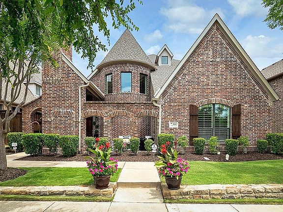 Stunning home with modern vibe that is newly UPDATED & meticulously cared for in highly sought after 5-Star West Frisco neighborhood, Pearson Farms. It features an open floor plan, floor to ceiling windows, gourmet kitchen, hand scraped hardwood floors, vaulted ceilings & so much more. 5 bdrm(5th used as a study),4 baths, master down, 2nd master up, 3 large living areas including family, media & game. 2 New 18 Seer HVAC in Aug '19, Paint entire house-May'19, New Carpet throughout April '19, Designer lighting throughout inside & out, Media room added 2016,Stamped concrete outdoor walkway,patio, landscaping added in 2010. Home faces a greenbelt park! Be prepared to fall in love with this entertainer's dream home!