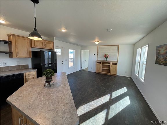EXPLORE MODERN living in this newly crafted manufactured home, where contemporary design meets functionality. Step into an inviting, open living space featuring a built-in TV cabinet and expansive windows that bathe the area in natural light. This stylish kitchen boasts modern amenities, including new appliances, a stainless-steel sink with a tiled backsplash, and wood style cabinets. Master bedroom has a spacious walk-in closet and a beautifully appointed bathroom. Enjoy the convenience of in-house laundry and the abundance of windows throughout the home. Positioned for ease, this property is in close proximity to shopping stores, popular dining restaurants and schools. Be the first to live in this brand new build! Kingman is only 45 minutes to Bullhead City/Laughlin area. Enjoy all your water activities such as swimming, boating & fishing at the Colorado River! Take a tour of this home today, awaiting your footsteps!