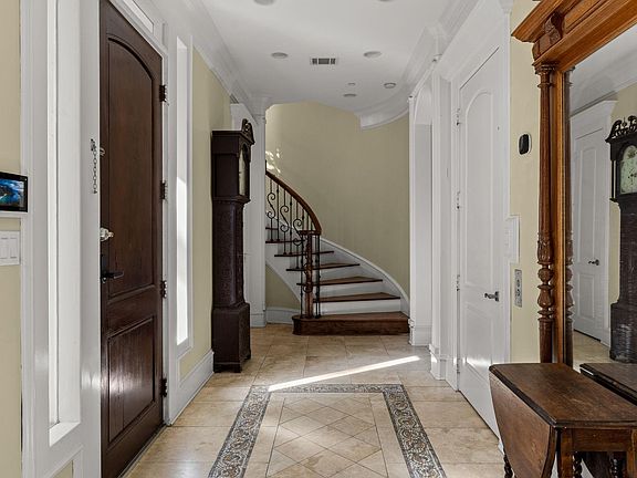 Custom-built victorian-style homeHigh ceilingsOpen dining spaceSweeping staircaseBuilt-in cabinetry
