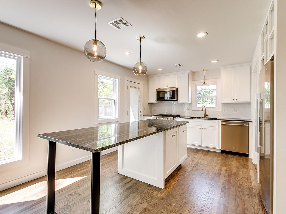 Completely remodeled 3 Bed / 2 Bath. Custom kitchen with a unique island for dining . Black granite countertops and champagne bronze finishes in kitchen and master bathroom. Kitchen comes with complete of sunset bronze high-end appliances. Vaulted master bedroom with black walnut wrapped beam to match the custom built-in entry bench. Refinished hardwood floors throughout complete house. Large backyard with 6' privacy fence. One of a kind! Tenant pays all utilities and maintains the lawn. $350 non-refundable pet fee (per pet)