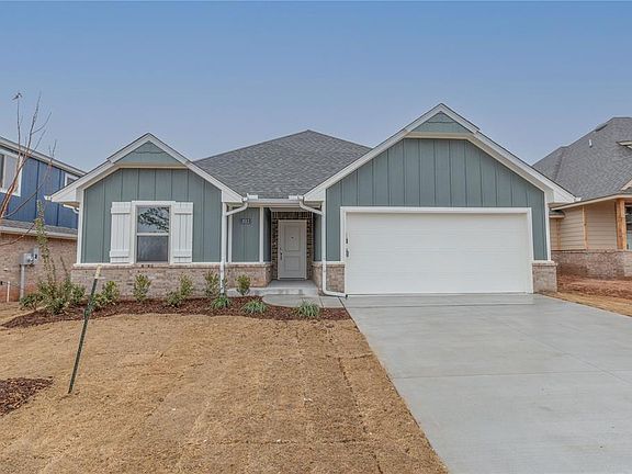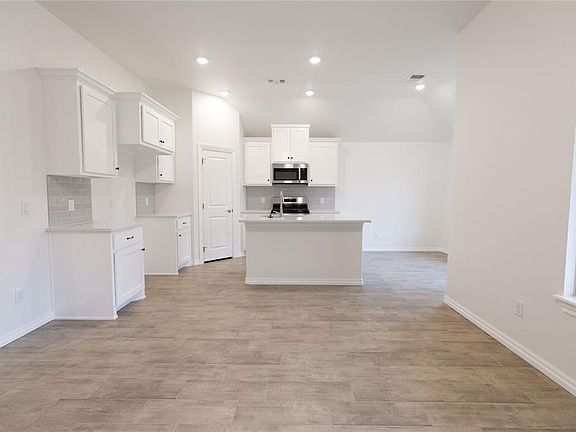 This Norma floor plan includes 1,425 Sqft of total living space, which includes 1,300 Sqft of indoor living & 125 Sqft of outdoor living space. There is also a 385 Sq Ft, two car garage with a storm shelter installed. This amazing and affordable home offers 3 bedrooms, 2 full bathrooms, 2 covered patios, & a utility room! The great room presents a 10-ft ceiling, with large windows, wood-look tile, a ceiling fan, hand-textured walls, & Cat6 wiring. The spacious kitchen includes beautiful countertops, stainless-steel appliances, custom-built cabinets, wood-look tile, a large corner pantry, & a center island that holds a dishwasher & a roomy sink. The primary suite supports a high ceiling, lovely windows, a ceiling fan, Cat6 wiring, & our cozy carpet finish. The primary bath is attached & holds a dual sink vanity with an elegant countertop selection, satin nickel delta features, an elongated water saving toilet, & a spacious walk-in closet. Outdoor living includes fully sodded yards, a smart home irrigation system, & 30-yr weather wood shingles. Other amenities include a tankless water heater, R-15 insulation, a fresh air intake system, & so much MORE!
