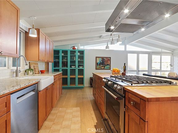 Welcome to 3012 Roxanne Ave! This architectural gem boasts signature Cliff May features that include post-and-beam construction, floor-to-ceiling glass windows, open beam ceilings, and clerestory windows that flood the interior with natural light while maintaining privacy. The thoughtfully designed floor plan flows effortlessly from the stylish interior to a private backyard oasis, with pool, spa, and fire-pit, perfect for entertaining or serene relaxation. Professionally landscaped and hardscaped with a large deck, concrete patios, built-in planters, curated greenery, the exterior is both low-maintenance and magazine-worthy. The kitchen has been reimagined with a large island, 6 burner stove and hood and a Vetrazzo countertop. A cook’s dream! Engineered hard wood flooring throughout. This property offers modern conveniences alongside authentic mid-century character, making it a rare and coveted find. Whether enjoying peaceful mornings bathed in natural light or hosting lively gatherings under the stars, this Cliff May home is a true sanctuary that celebrates the best of Southern California living. Don’t miss your chance to own this architectural treasure! The property is situated in a great location within the Rancho Estates, which is a neighborhood renowned for its Cliff May designed midcentury modern architecture, tree-lined streets, strong sense of community, and eclectic demographic. Bordered by 800 acre El Dorado Park and Nature Center, which includes public tennis facilities, a public golf course, frisbee golf course, archery range, dog park, lakes and streams, picnic areas, and much more. From the park one can access the San Gabriel River bike path, with auto-free access to Seal Beach. The mix of iconic architecture, safe and quiet community, and beautiful natural surrounding make this one of Long Beach's most sought-after neighborhoods.