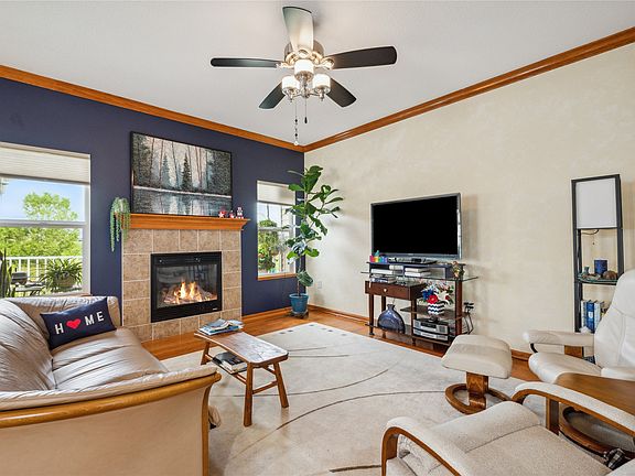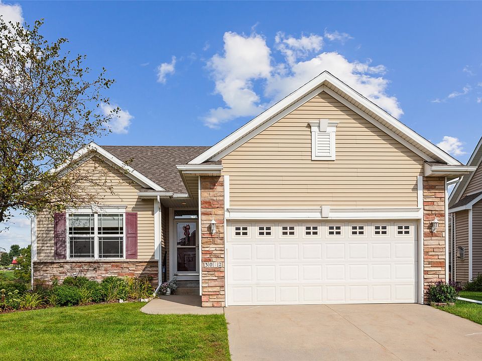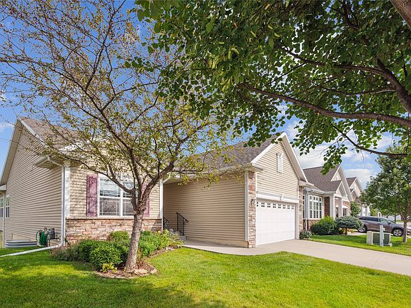 It's time to relax and enjoy maintenance free living in this better than new open concept detached ranch villa. This home is set in a beautiful, friendly community with walking trails, a tree lined creek, fishing ponds, a community center with kitchen, meeting room and large gathering room, an exercise/workout facility, and swimming pool. Throughout this open floor plan home, you'll find quartz countertops, adding a touch of elegance to every room. The gas fireplace creates a cozy ambiance in the living space. Vaulted ceilings enhance the sense of openness and style throughout the home. The spacious kitchen features an inviting island, perfect for gatherings, stainless steel appliances, a pantry for storage, and dining area. Downstairs in the finished walk-out lower level, you'll discover a comfortable third bedroom and an abundance of storage space, a large, open family room and an additional full bath. Enjoy outdoor living with a deck on the main level and a patio in the walkout lower level that opens to the gorgeous backyard and backs up to tree lined ponds and walk path. One of the best locations in Ankeny and centrally located near Prairie Trail, Southeast Elementary, Southview and Ankeny High School, Delaware shopping & quick access to I-35 and I-80! Check it out today!