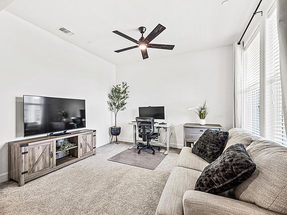 Welcome to Woodsides Olive floor plan in Copper Heights — one of the area's most desirable neighborhoods! This stunning 3-bedroom, 2.5 bath, 2,115 sq. ft. home offers style, comfort, and modern efficiency throughout. Curb appeal shines with its clean lines and quality craftsmanship, and the inside is just as impressive. Step into a bright open floor plan designed for both everyday living and entertaining. The chef's dream kitchen features an oversized quartz island, stainless steel appliances, a gas range with designer hood, and a water filtration system at the sink. Added cabinetry provides extra storage, while the open layout flows seamlessly into the spacious great room and formal dining — perfect for gatherings. Smart home touches include Wi-Fi and remote access on your phone for ceiling fans and the garage door, recessed lighting with dimmers in the great room and primary suite, and blinds throughout. The primary retreat is generously sized with a spa-like ensuite featuring dual sinks, an upgraded oversized walk-in shower, and upgraded tall linen for extra storage to complete this ensuite. The secondary bedrooms are also spacious, offering plenty of room for family, guests, or hobbies. A flex/office area adds even more versatility for a home office, workout space, or playroom. The 3-car tandem garage boasts 8-ft doors for larger vehicles or additional storage. Step outside to the covered patio and low-maintenance backyard, ideal for relaxing evenings or weekend barbecues. Additional highlights include solar, energy-efficient gas appliances, tankless water heater, and quality upgrades throughout. This home shows like a model — move-in ready and no need to wait for a new build! Schedule your showing today!