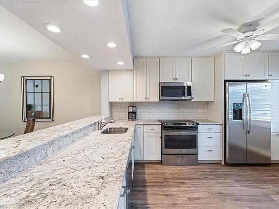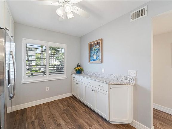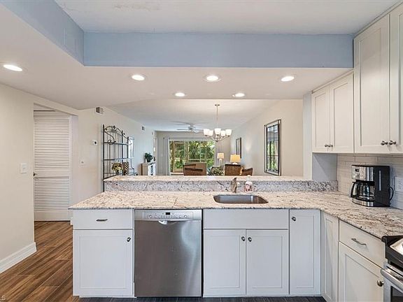This updated 2 bedroom, 2 bathroom condo is located in the quiet and private community of Naples Sandpiper Bay Club, just minutes from downtown Naples and the beaches. The unit features an open layout with abundant natural light throughout. The kitchen has been updated with stainless steel appliances and modern finishes perfect for a Florida condo. The primary bedroom includes a large walk-in closet and a spacious en-suite bathroom with a separate shower and toilet area. Situated on a raised first floor, the condo offers easy access while providing added peace of mind, it has never flooded. Naples Sandpiper Bay Club spans 13 acres along Haldeman Creek and offers a peaceful setting with beautifully landscaped grounds. Community amenities include two swimming pools, a clubhouse with regular social activities, an outdoor BBQ deck with dining tables, and plenty of parking. Onsite management is available for added convenience. Gulf access is available via community boat docks, which can be leased or purchased when available.