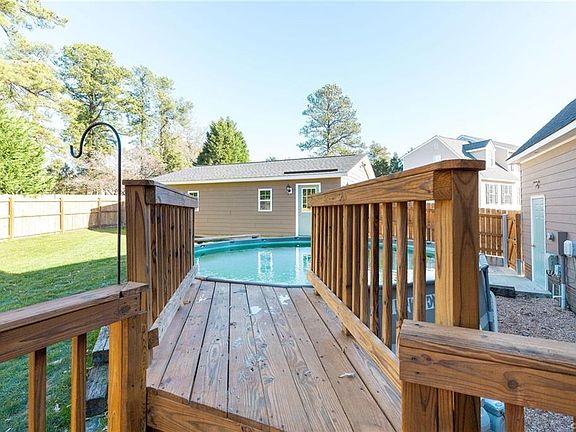 LOCATION, LOCATION. This home sits in the perfect location five minutes from a wide variety of restaurants and shopping and is within walking distance of schools. It is situated in a quiet and friendly neighborhood at the end of a cul-de-sac. It features 3 bedrooms and 2 1/2 baths, a large living room, formal dining room and eat in kitchen. Laminate floors have been installed throughout the entire house and the stairs have recently been stained and finished. Enjoy evenings barbecuing on your deck located next to the above ground pool. Store your lawn equipment in the recently added 12x16 shed. Work on automobiles and other projects in the comfort of your 24x32 heated and cooled garage/MAN CAVE featuring a bathroom, flush mount speakers and plenty of cabinets for storage and floored attic. The floor is finished with an epoxy paint. The yard has been well maintained with year-round green grass. A large graveled area sits on the back side of the garage for your R.V. or boat, with a front and rear entrance through the fence. A new roof was added in February 2017 and new heat pump approximately 7 years ago. Appliances and pool convey in AS IS condition. All this home needs is you.
