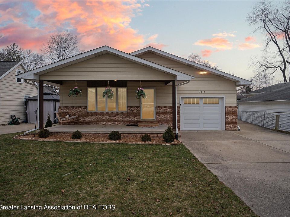 Here it is, the home you've been waiting for! Well maintained and move in ready, many updates, a great layout, large windows for natural light, adorable curb appeal, spotlessly clean (even the basement), and best of all.... a great low price!! The welcoming covered front porch has a bench swing, perfect for relaxing with a morning coffee or evening beverage. The spacious living room offers beautiful hardwood flooring, crown molding, and features a floor to ceiling brick fireplace with hearth, mantel and a heatilator. The nice sized dining area is open to an updated kitchen with plenty of quality cabinetry, countertop space, tastefully tiled backsplash, newer large sink, newer Bosch dishwasher, and hickory flooring. Don't miss the convenient laundry chute in the linen closet floor. The large primary bedroom includes an updated full bathroom and double closets. Bedrooms 2 & 3, and a full hallway bathroom complete the main level. The full lower level with high ceilings could easily be used as living space and includes the laundry area, lots of storage shelving and cabinets, and a newer top of the line Trane HVAC system. Additional updates and amenities include a newer garage door with keypad, ring doorbell, smart Nexia Trane thermostat, radon mitigation, added attic insulation, and newer sod, grass, and landscaping in the front yard.