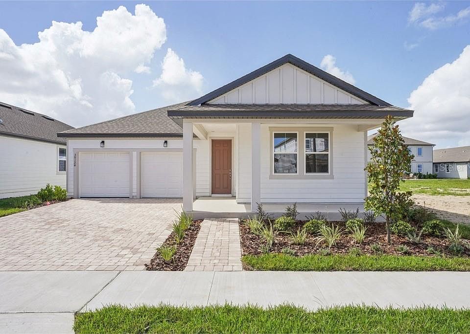 Under Construction. This thoughtfully designed home in the Trailside community features 3 bedrooms, 2 baths, and a spacious 2-car garage. The open floorplan offers abundant natural light and a seamless flow through the main living areas, which showcase beautiful wood-look luxury vinyl plank flooring. The kitchen is equipped with 42" neutral-toned cabinets, a large island with upgraded quartz countertops, and stainless steel appliances—perfect for everyday living and entertaining. Plush upgraded carpet adds comfort in the bedrooms. The interior design selections are inspired by the Milan Collection from the Ashton Woods Studio, bringing modern elegance and timeless style throughout. Enjoy community amenities including a pool, clubhouse, and playground. Conveniently located near top-rated schools and the charming shops and restaurants of downtown Mt. Dora.