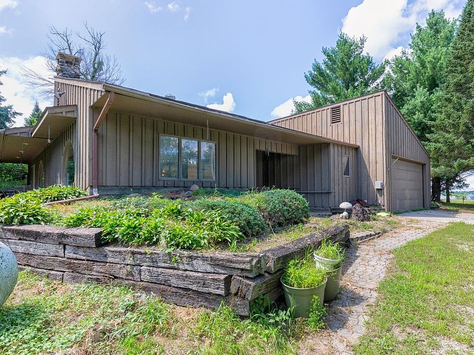 Welcome to this truly "unique and one of a kind" home, thoughtfully designed and built in 1982 with architectural elements that were well ahead of its time. It has a clean, open floor plan with many special features including large round windows offering scenic countryside views. The kitchen, dining and living area surround a central atrium - ideal for a home office, indoor garden or flexible living space to suit your needs. The kitchen features a built-in dishwasher, refrigerator, oven, Jenn-Air cook-top and lots of cabinets. There are two bedrooms, one of which is the master bedroom with full bath, whirlpool tub and walk-in closet. There is also a guest bath and a half bath in the laundry room that provides added convenience. It has a two car attached garage plus a detached garage for extra tools or toys! Situated on 1.4 acres, the home is a peaceful setting with privacy and room to enjoy the outdoors. This home is the perfect match for buyers looking for a distinctive layout, private setting and flexible living space.