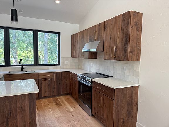 Quartz countertopsTwo car finished garageBlack walnut custom cabinetryCovered back patioWhite oak hardwood flooringTile walk-in shower
