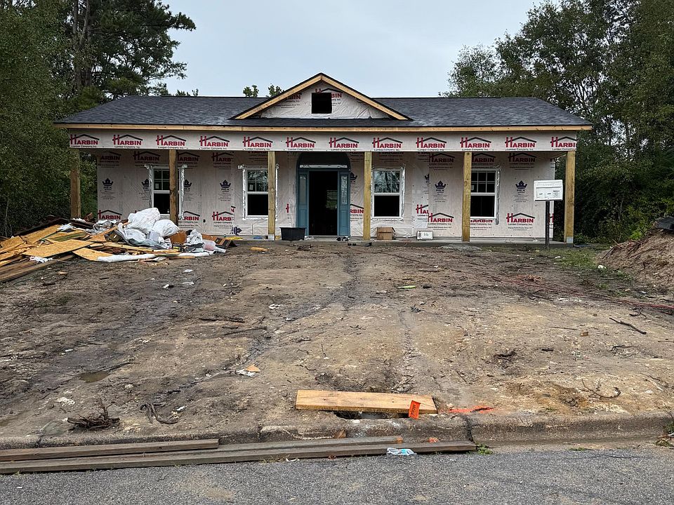 This stunning 3-bedroom, 2-bath ranch offers the perfect blend of comfort and modern style. Step onto the covered rocking chair front porch and enter a spacious great room featuring high ceilings and laminate plank flooring throughout. The open layout connects the dining room and kitchen, showcasing granite countertops, tile backsplash, and total electric efficiency.