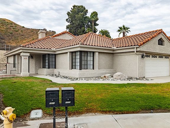 3-bedroom 2-bathroom single-story home in the rolling hills of Reche Canyon. There have been several significant upgrades within the last 3-4 years, including a NEW HVAC system, concrete to extend the width of the driveway, fresh exterior and interior paint, leaf filter gutters, garage paint and epoxy flooring, and about $9K worth of no-maintenance hardscape. Backyard hillside has been cleared of vegetation and fenced, however the property line does extend farther up the hill. Spacious living area with vaulted ceilings, primary bedroom has an en suite bathroom with dual vanities and a separate shower and soaking tub. Indoor laundry room, window blinds throughout, oversized two-car garage. Roof has been maintained, Section I Clearance was issued in 2020. Walking distance to Reche Canyon Elementary School and Prado Park, close to Blue Mountain Trail, and about 3 miles to Loma Linda University Medical Center. Enjoy a rural feel while still being close to shopping, dining, and freeway access.