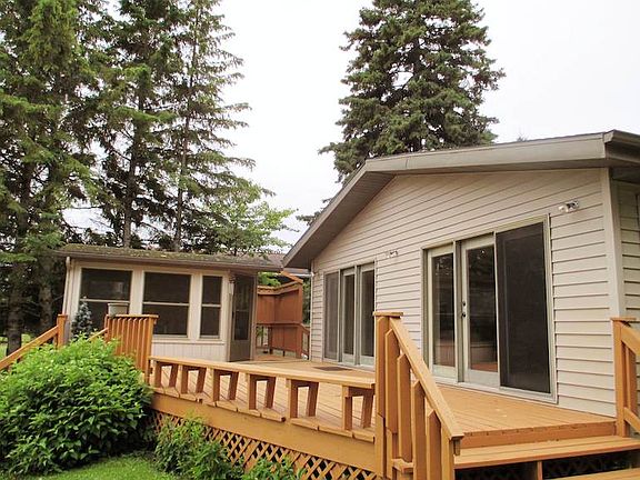 One Level Rainy Lake Home on level lot with gradual slope. Low maintenance exterior, attached garage, large decks, private yard, storage shed across street, great views, close to public landing. Open floor plan, large master bedroom with roomy closet and attached bath and private entrance/deck.