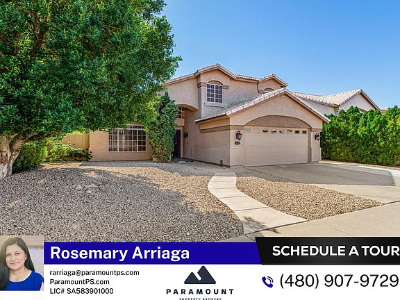 Immaculate, move-in ready 4-bed, 3-bath home with a sparkling Pebble-Tec pool and soothing water feature pool service included! ** Nestled in the heart of Ahwatukee's Echo Canyon, this light-filled home features open living and dining areas, a beautiful kitchen with granite counters, stainless steel appliances, and a center island, plus a spacious family room with a cozy fireplace. Includes a main-level bedroom and full bath. Designer upgrades throughout crown molding, plantation shutters, new carpet, plank-tile floors, and upgraded baseboards. The extended covered patio with elegant columns opens to a large deck and lush grassy yard with storage shed. Perfectly located near top-rated schools, shopping, dining, and freeways a true Ahwatukee gem!